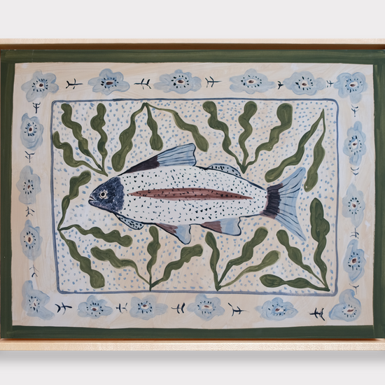 This painting is offered with the option to frame in a natural wood floater frame. If purchased unframed, the sides of the panel are painted white, with hanging hardware attached, and is ready to hang.