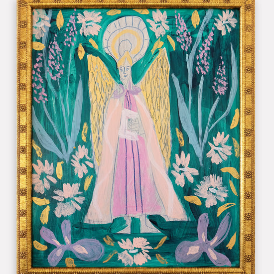 This original work is a framed painting on masonite. Each painting is signed on the back and comes with a keepsake card for each recipient to name their own angel!