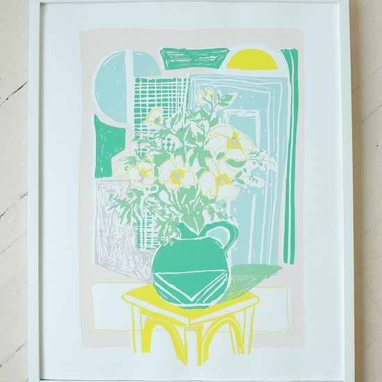 These are a limited edition of 100 high-quality, signed Silkscreen Prints on 100lb White French Paper. Silkscreen printing is the process of hand mixing colors and layering ink on the paper one at a time. This gives the print a tactile feel which creates a beautiful result when layering large swatches of color. These were printed by the Half and Half in Columbia, SC.
