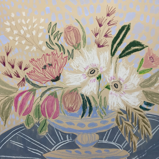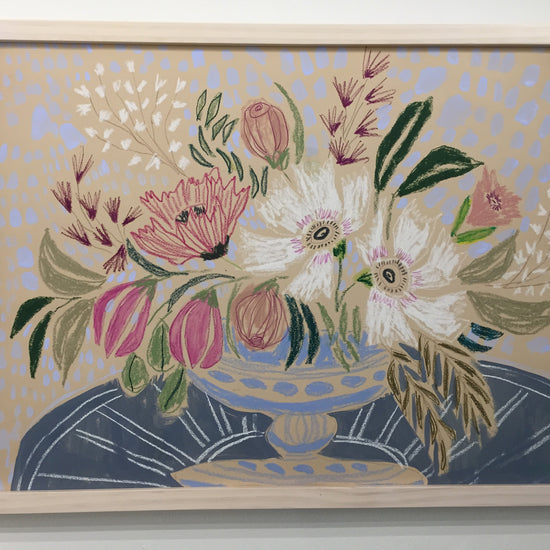 This winter I have had a lot of fun experimenting with this new series on paper! They are mixed media works made with a mixture of water soluble crayons, pastels, watercolor pencils and gouache! You can either purchase the work on paper unframed, or you can purchase it in the whitewashed wooden frame. If you purchase it unframed, it will be shipped in a cellophane bag, packaged flat, sandwiched in between two pieces of study cardboard. The framed option will be safely bubbled and boxed!