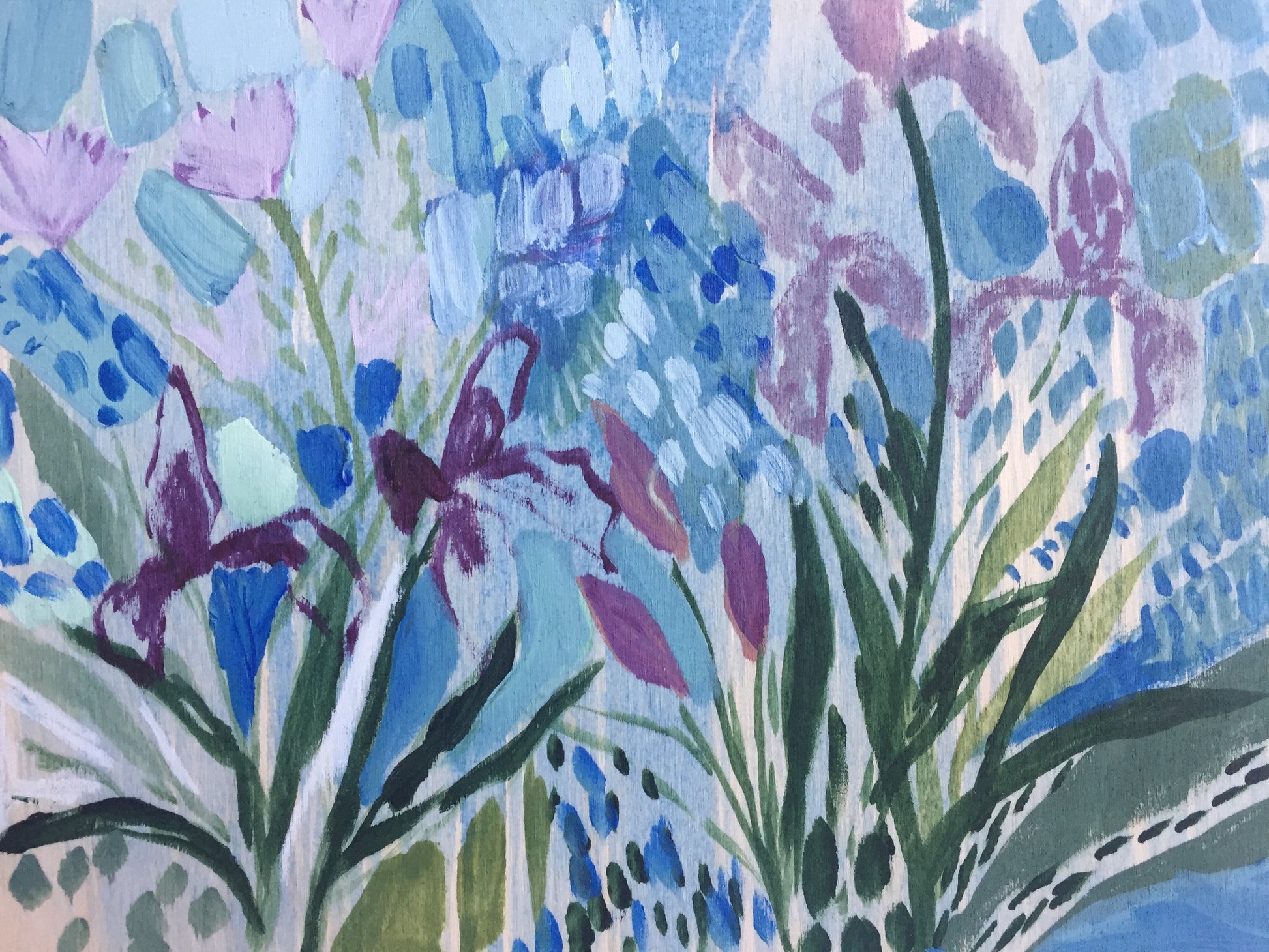 This floral work is an acrylic painting on a birch wood panel that is 2 inches deep. The sides of the painting are white and it is ready to hang. To see an update on what new work is entering the shop you can check out my Instagram! This painting includes shipping within the US.