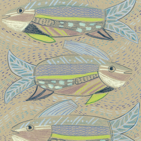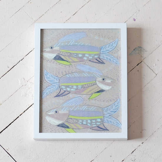 After giving birth to my daughter in November 2015, I experimented with this new series on paper during her nap times! Working my way through the alphabet, these little fish are a signed copy of an original mixed media work made with a mixture of water soluble crayons, pastels, and watercolor pencils!
