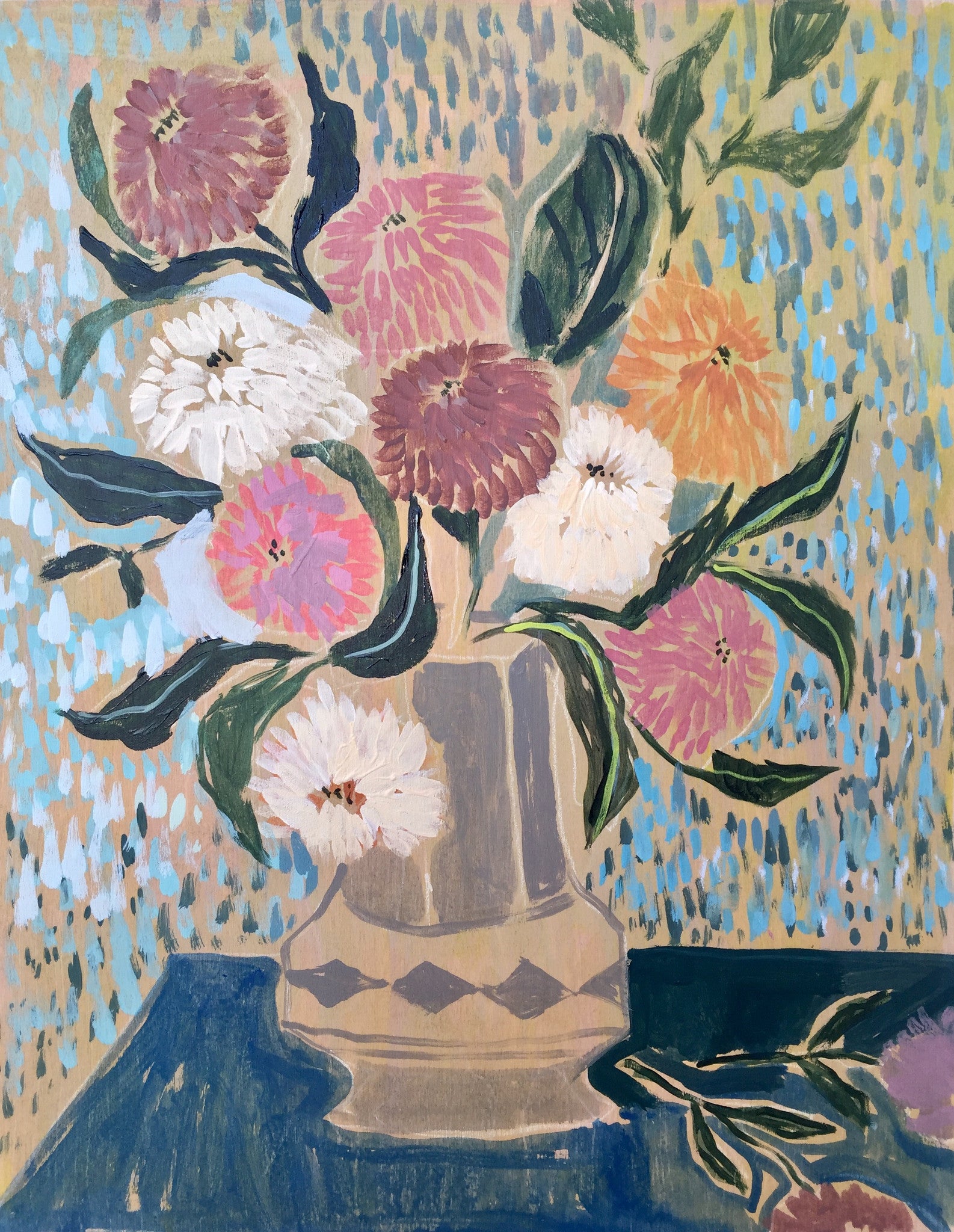 This floral work is an acrylic painting on a birch wood panel that is 2 inches deep. The sides of the painting are white and it is ready to hang. To see an update on what new work is entering the shop you can check out my Instagram! This painting includes shipping within the US.