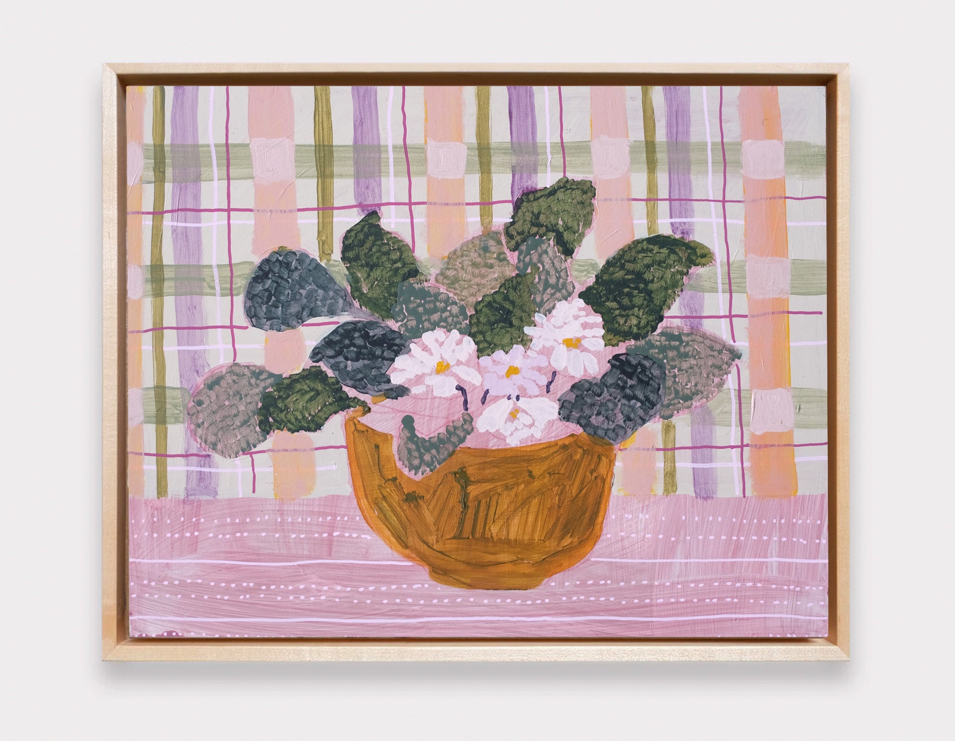 This original piece comes with the option to frame in a natural wood floater frame. If purchased unframed, it arrives as a masonite panel. Framing takes 3-4 weeks. Shipping is included within the US, and for international quotes, please email us at hello@luliewallace.com. All paintings ship out of my studio in Columbus, Georgia.